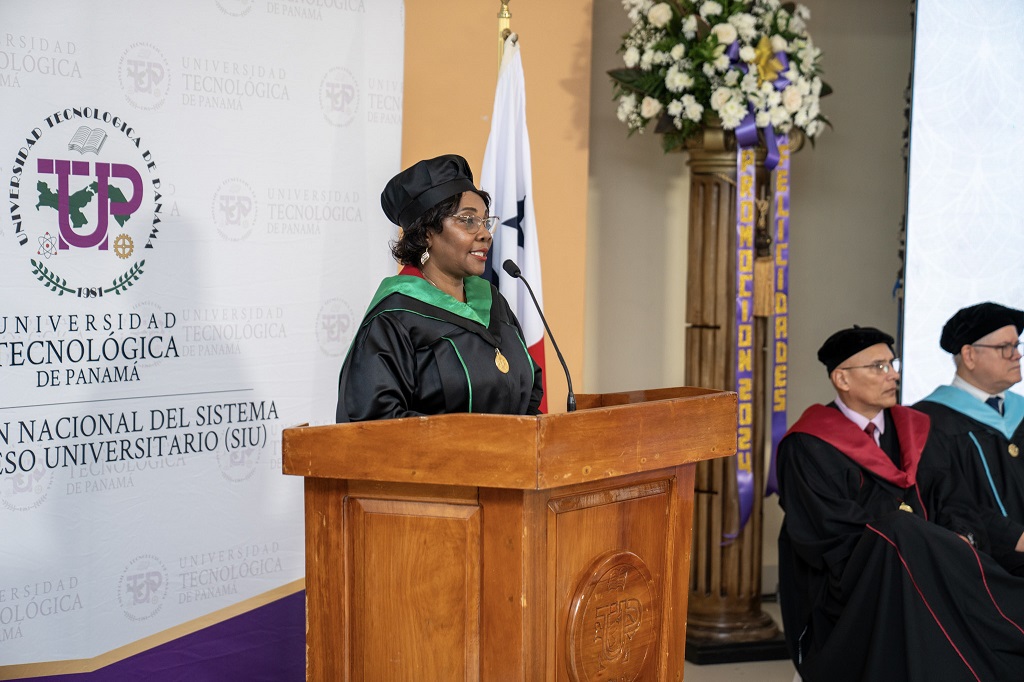 La rectora de la UTP, Dra. Ángela Laguna Caicedo, exhortó a los estudiantes a seguir sus sueños, tomar en cuenta las economías emergentes y las que ya están posicionadas como líderes y que apuestan a la tecnología como motor de la innovación.