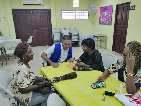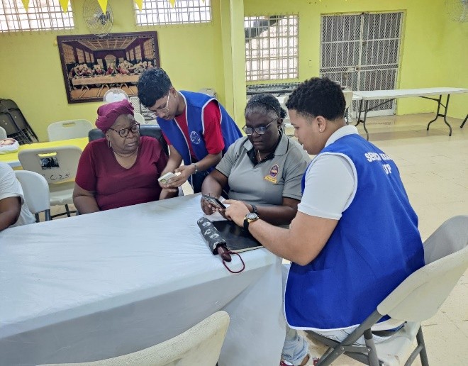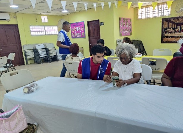 Un grupo de estudiantes del Centro Regional de Colón de la Universidad Tecnológica de Panamá (UTP) como parte de su cumplimiento de horas de servicio social, dictan un taller a personas de la tercera edad sobre el uso de teléfonos móviles en la Iglesia Episcopal de Cristo conocida como la Iglesia de Piedra, en la ciudad de Colón.