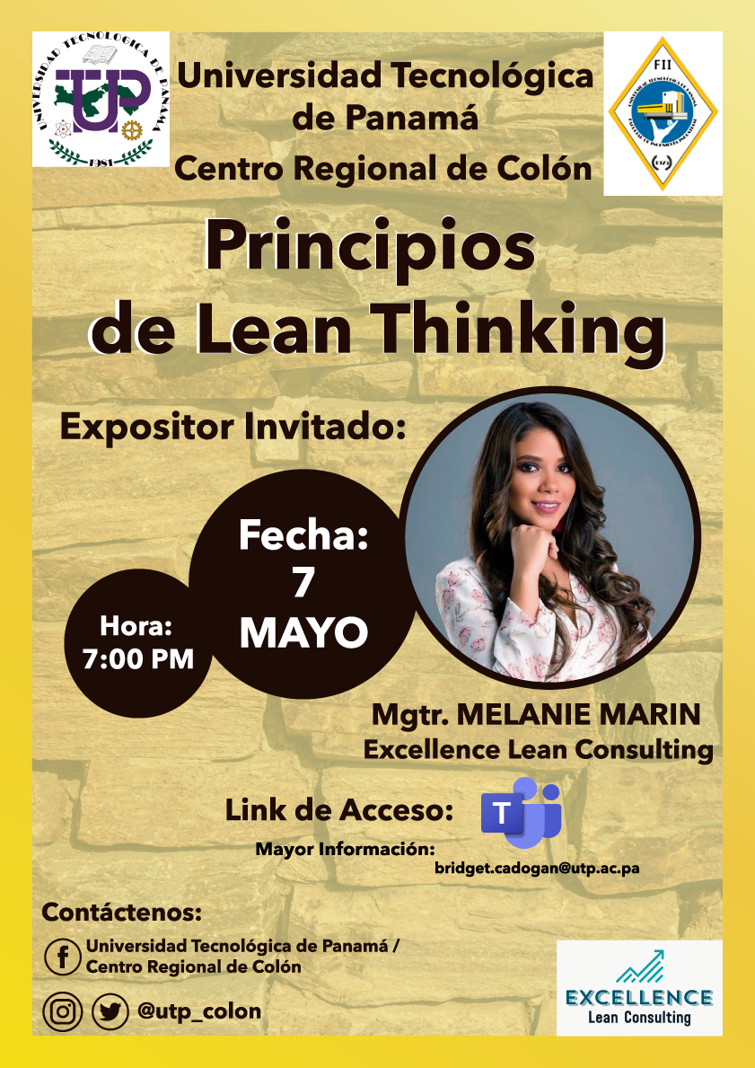 El Centro Regional de Colón los invita a participar del Webinar Lean Thinking que tiene como objetivo desarrollar en los estudiantes el pensamiento Lean para su aplicación en la vida personal y profesional.